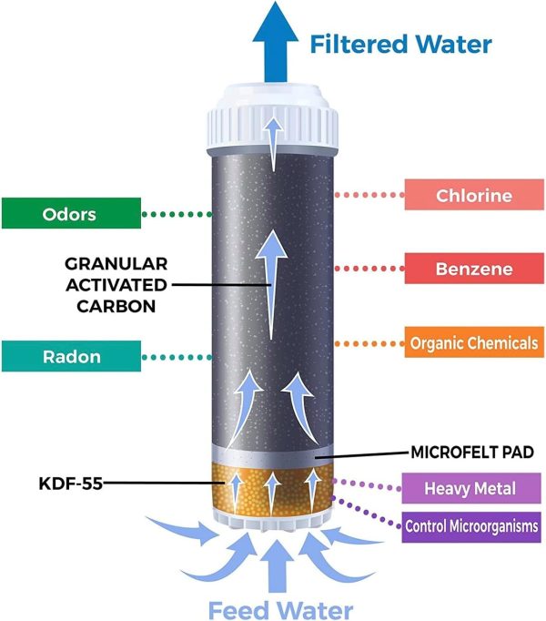 Granular Activated Carbon (GAC): Removes chlorine, chloramine, bad taste, and unpleasant odors, improving the overall quality of your drinking water.