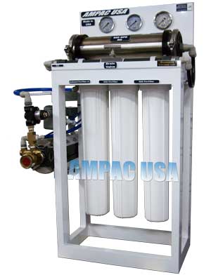 The AMPAC USA Tower™ Series design is optimized for Free Standing Application The five models; 100 GPD, 200 GPD, 300 GPD and 400 GPD all occupy the same very compact footprint. This allows flexibility in accommodating the limited space available in most commercial utility equipment locations. Quick connect tube fittings on all system ports further simplifies installation and service. Most importantly, all AMPAC USA Tower™ Series models incorporate the most reliable combination of proven reverse osmosis hydraulic design and state of the art Thin Film Membrane Elements to provide the long-term performance expected by commercial users.  The welded Aluminum Frame with the Aluminum Diamond Plate allows easy access to all major system components.