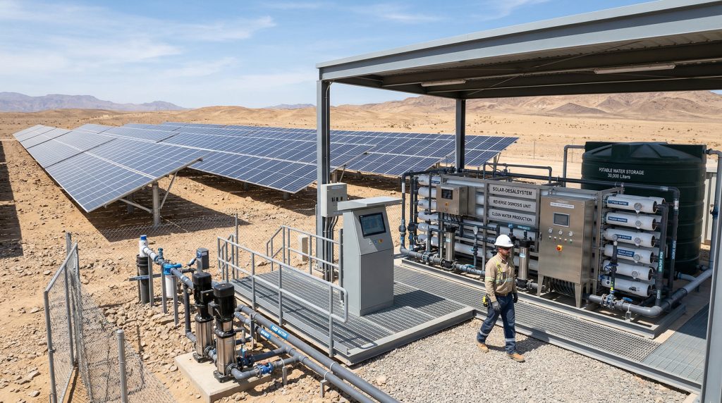 Solar-powered reverse osmosis (Solar-RO) has fundamentally changed that equation. By coupling photovoltaic panels directly with RO desalination units, it’s now possible to produce thousands of gallons of potable water per day in locations with zero grid connectivity. The technology has matured past the pilot-project stage. Real systems are running in the Caribbean, sub-Saharan Africa, Southeast Asia, and disaster zones around the world—producing water at costs that are increasingly competitive with conventional diesel-powered alternatives.