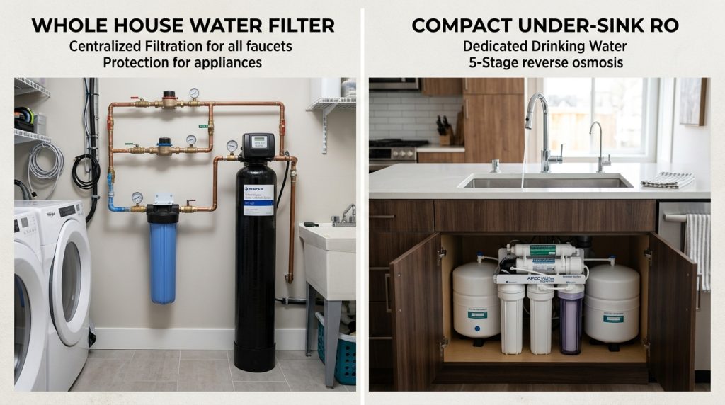 Water treatment professionals often recommend a combined approach: a whole house system for general sediment and chlorine removal, paired with an under-sink RO system for the highest-quality drinking water. This layered strategy protects your plumbing and appliances while ensuring the water you drink and cook with is as pure as possible.